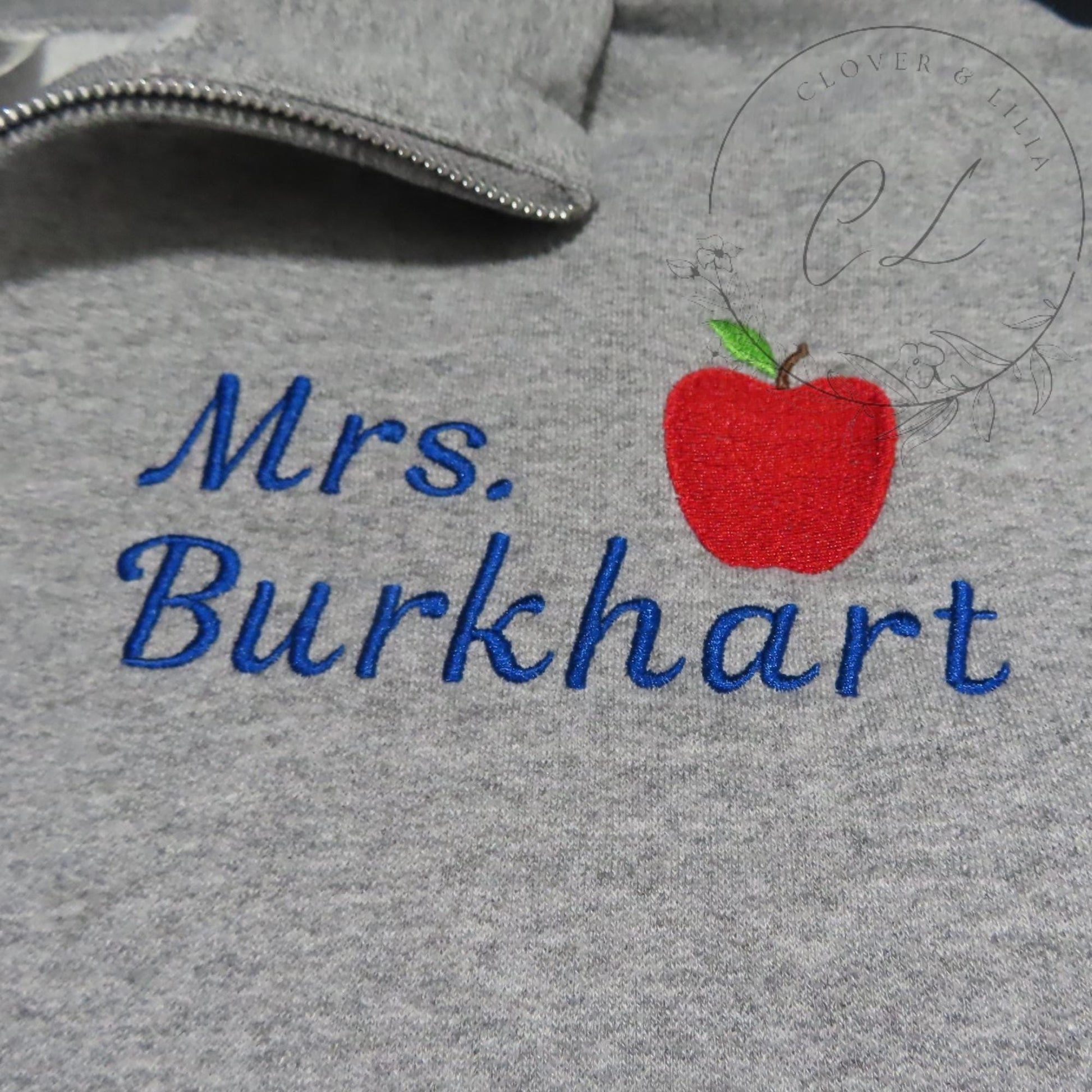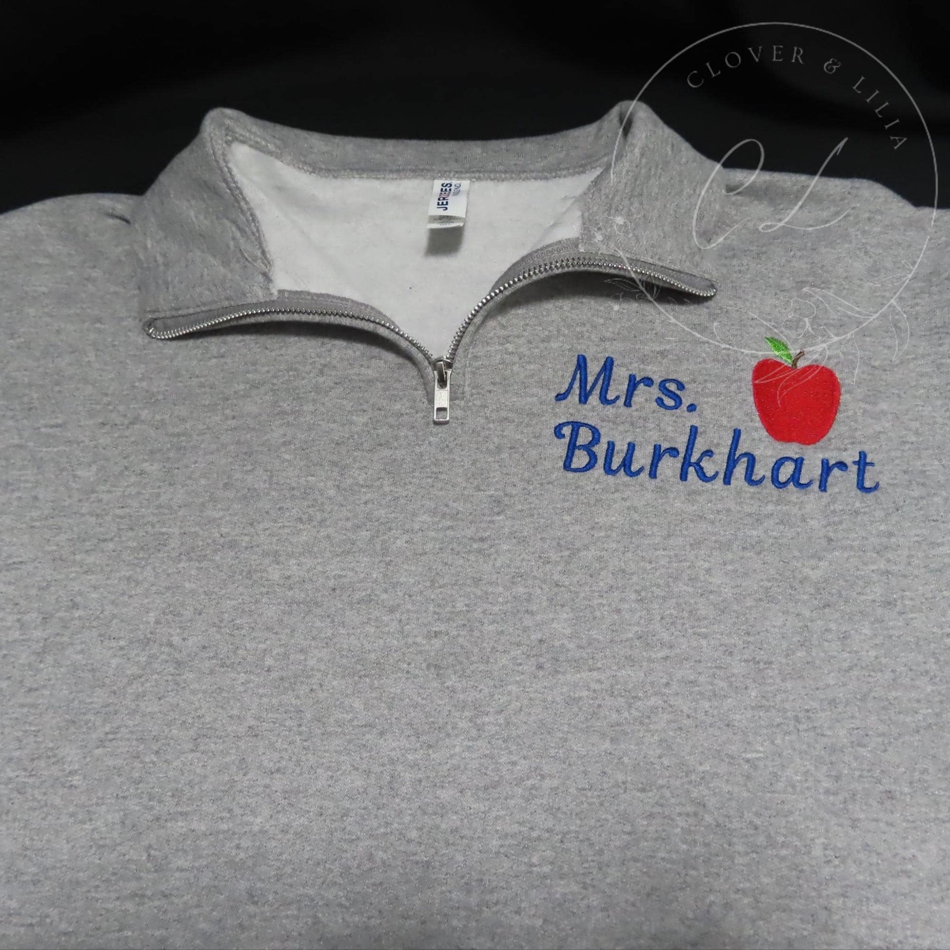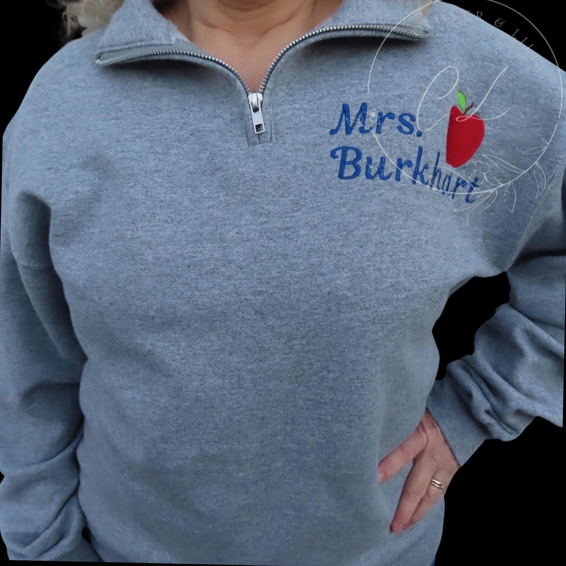 CUST01| Custom Embroidered Quarter Zip Sweatshirt | Embroidered Quarter Zip | Custom Teacher Embroidered Quarter Zip | Gift for Teachers |
